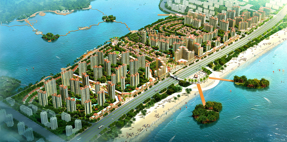 防城港龍光•陽光海岸是防城港市政府重點招商引資的項目,位于廣西防城港市港口區興港大道。項目東臨約2700畝桃花湖公園,西臨西海灣,有約2公里的海岸綫。是泛北部灣區域難得一見同時擁有海景和湖景雙重景觀資源的項目。 “陽光海岸”項目占地面積約1200畝,總建築面積超過150萬㎡,綠地率高達40%以上,是集別墅、洋房、高層住宅等爲一體的綜合性社區,配套建設了五星級酒店、高級寫字樓、大型購物中心、近1萬㎡濱海休閑廣場、臨湖木棧道、臨湖會所、學校、幼兒園等。