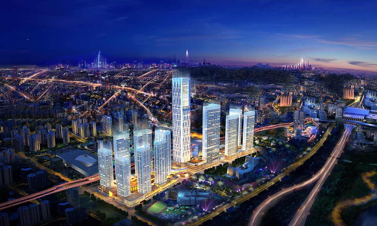融合約200m鑽石立面寫字樓、萬麗酒店、約10萬㎡體驗式商業、精品公寓于一體